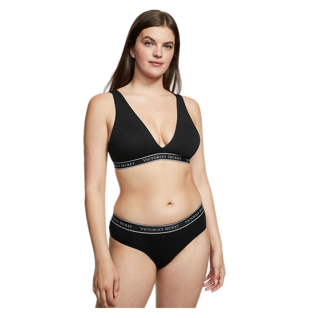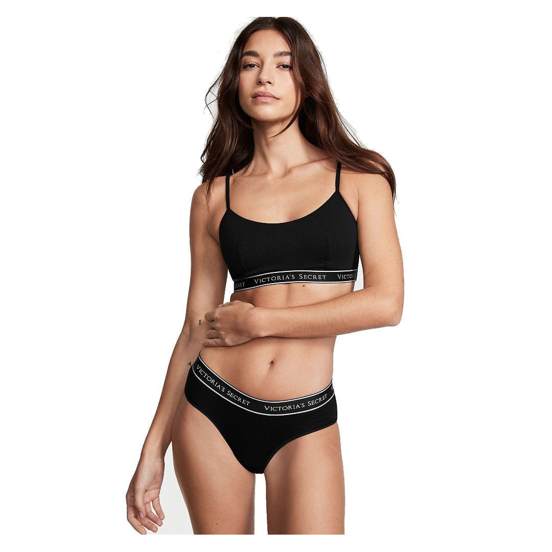 Victorias Secret Klasické Bavlněné Kalhotky Stretch Bikini Logo černé jsou vyrobeny z měkkého bavlněného materiálu. Mají elastický pas, který se přizpůsobí tvaru těla. Na pasu je umístěno ikonické logo značky. Design kalhotek kombinuje pohodlí a styl, což je charakteristické pro tuto značku.| BARVA | černá |