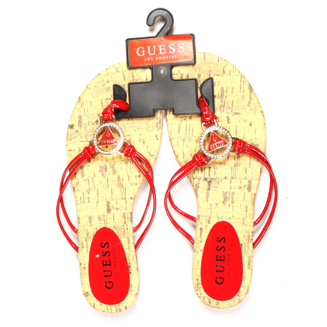 Guess dámské žabky. Vyrobeno z prvotřídních materiálů. Samozřejmostí je garance původu, originální štítek s výrobním číslem a seriovým číslem produktu. Žabky jsou skladem a jsou připraveny k okamžitému odeslání.
