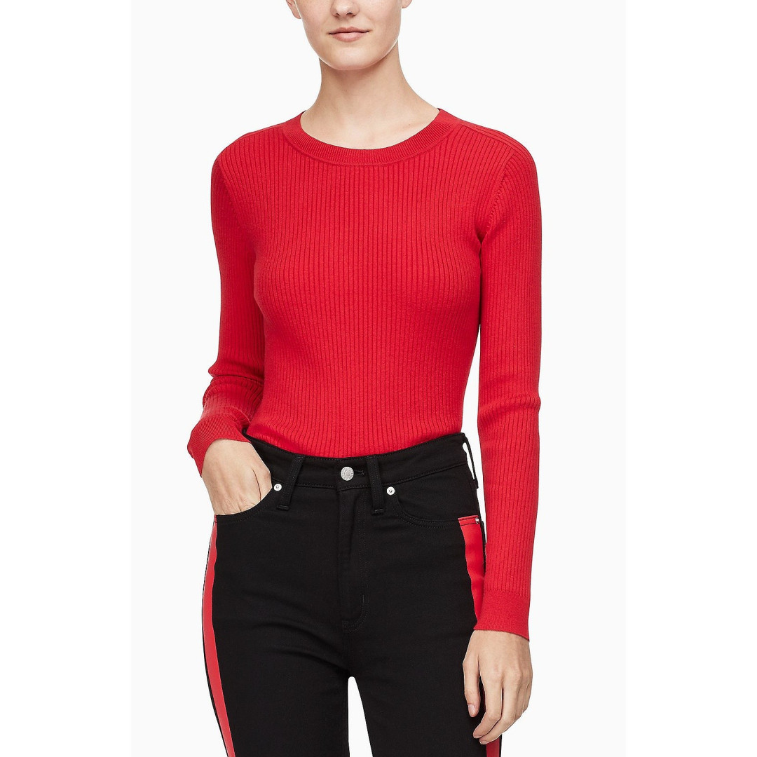 Calvin Klein dámský svetr s dlouhým rukávem červené barvy z kolekce Calvin Klein. Svetr je vyroben z látek nejvyšší kvality. Látka má elastické vlastnosti. Logo je kvalitně provedeno. Samozřejmostí je garance původu, originální štítek CK s výrobním číslem a seriovým číslem produktu. Veškeré zboží máme skladem k okamžitému odeslání