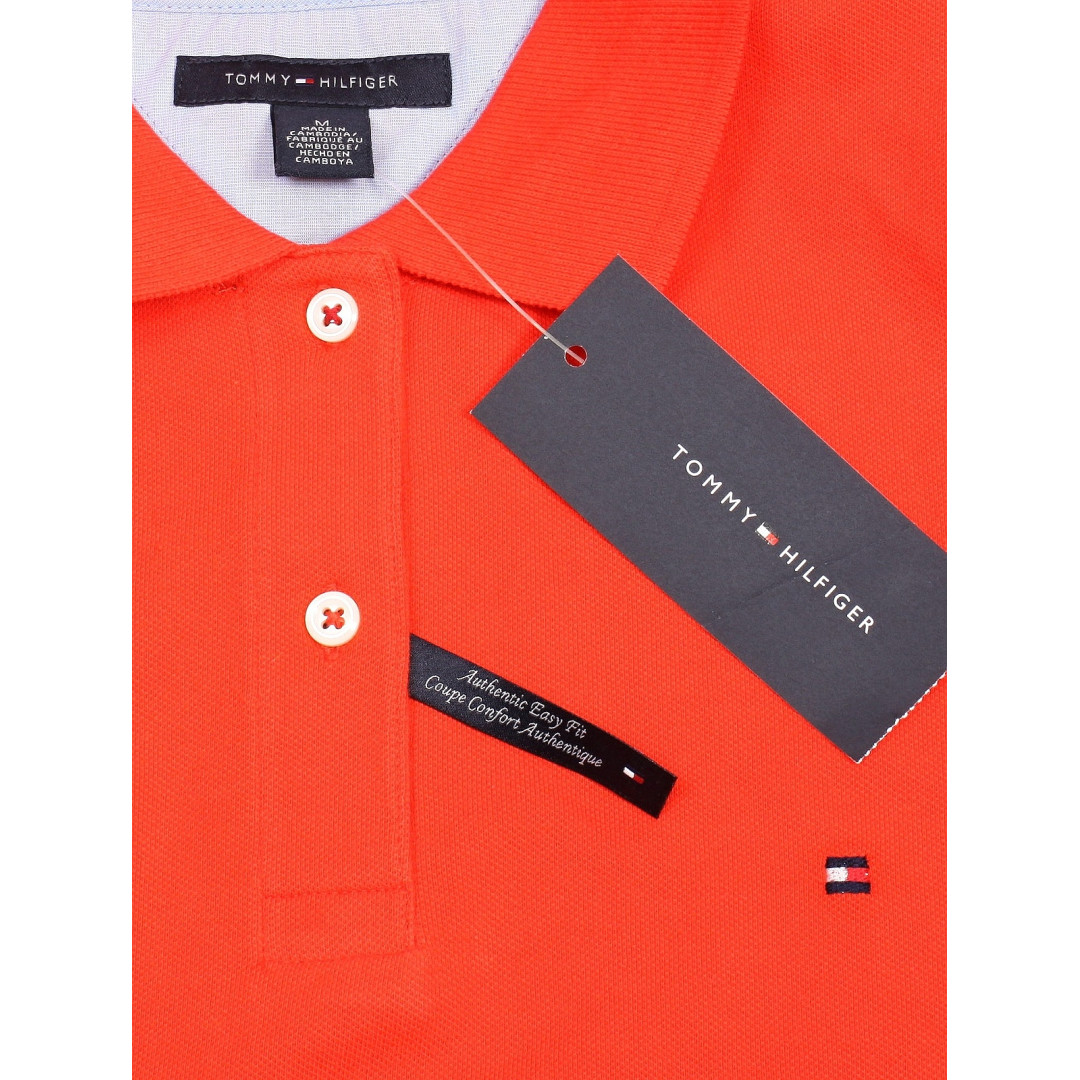 Tommy Hilfiger dámské polo tričko s krátkým rukávem orange/červené Easy Fit je stylový kousek do každého šatníku. S jeho svěžím oranžovo-červeným designem a pohodlným střihem je ideální volbou pro každodenní nošení. Vyrobeno z kvalitního materiálu, který je příjemný na dotek a zaručuje dlouhou životnost. Skvěle se kombinuje s džíny nebo sukni pro neformální, ale trendy vzhled.