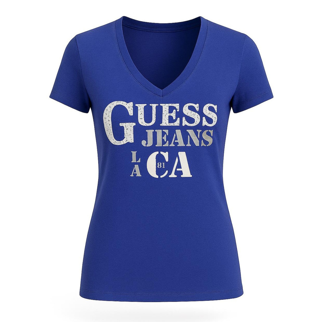 GUESS dámské tričko Angeles modré barvy. Tričko je vyrobeno ze 100% bavlny prvotřídí kvality. Tričko je elastické. Samozřejmostí je garance původu, originální štítek s výrobním číslem a seriovým číslem produktu. Tričko je skladem a je připraveno k okamžitému odeslání.