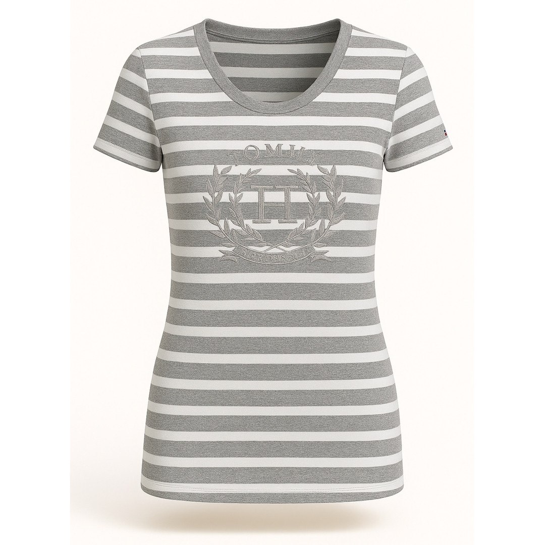 Tommy Hilfiger dámské tričko graphics pruhované šedá/bílá