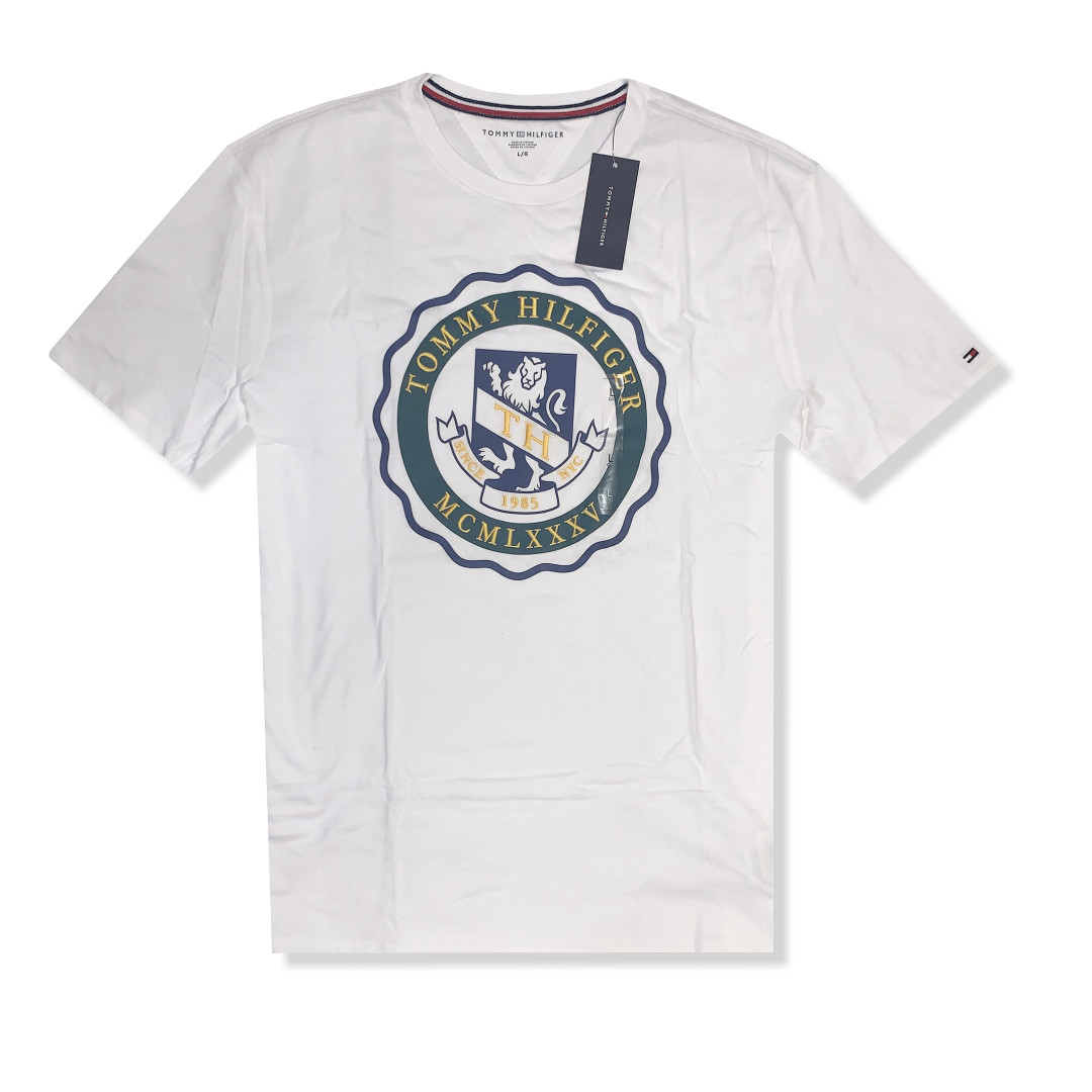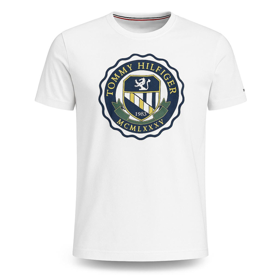 tričko Tommy Hilfiger Bílá barva s ikonickým logem Materiál: 100% bavlna Kulatý výstřih Krátký rukáv Odhadovaná váha: 200 g