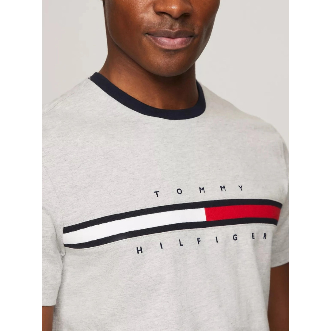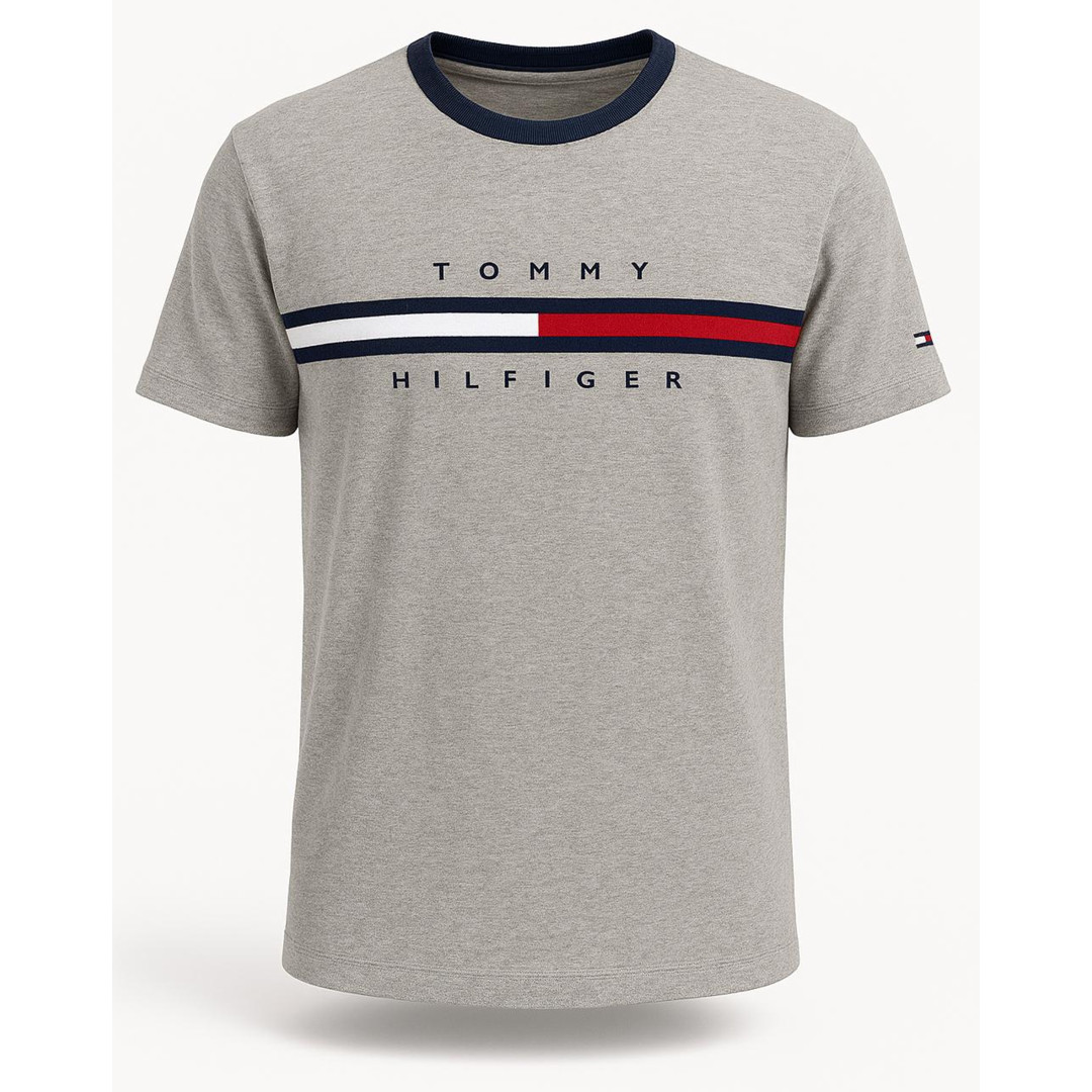 Pánské tričko Tommy Hilfiger Šedá barva Materiál: 100% bavlna Kulatý výstřih Krátký rukáv Logo a pruhy na hrudi Odhadovaná váha: 200 g