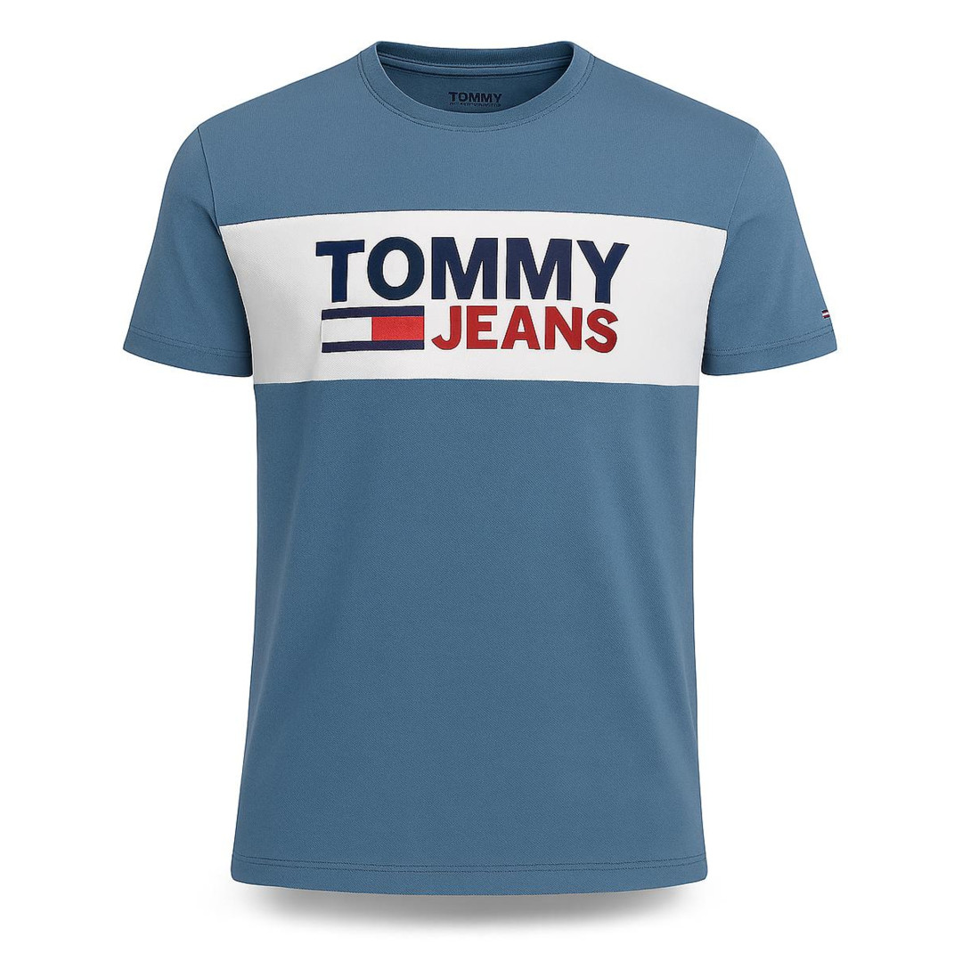 Tommy Hilfiger pánské tričko s krátkým rukávem Essentia Wide Logo light blue má světle modrou barvu a široké logo značky na hrudi. Tričko je vhodné pro různé příležitosti a lze ho kombinovat s džínami, chinosy nebo kalhotami a sakem. Je to oblíbený kousek oblečení pro každodenní nošení.