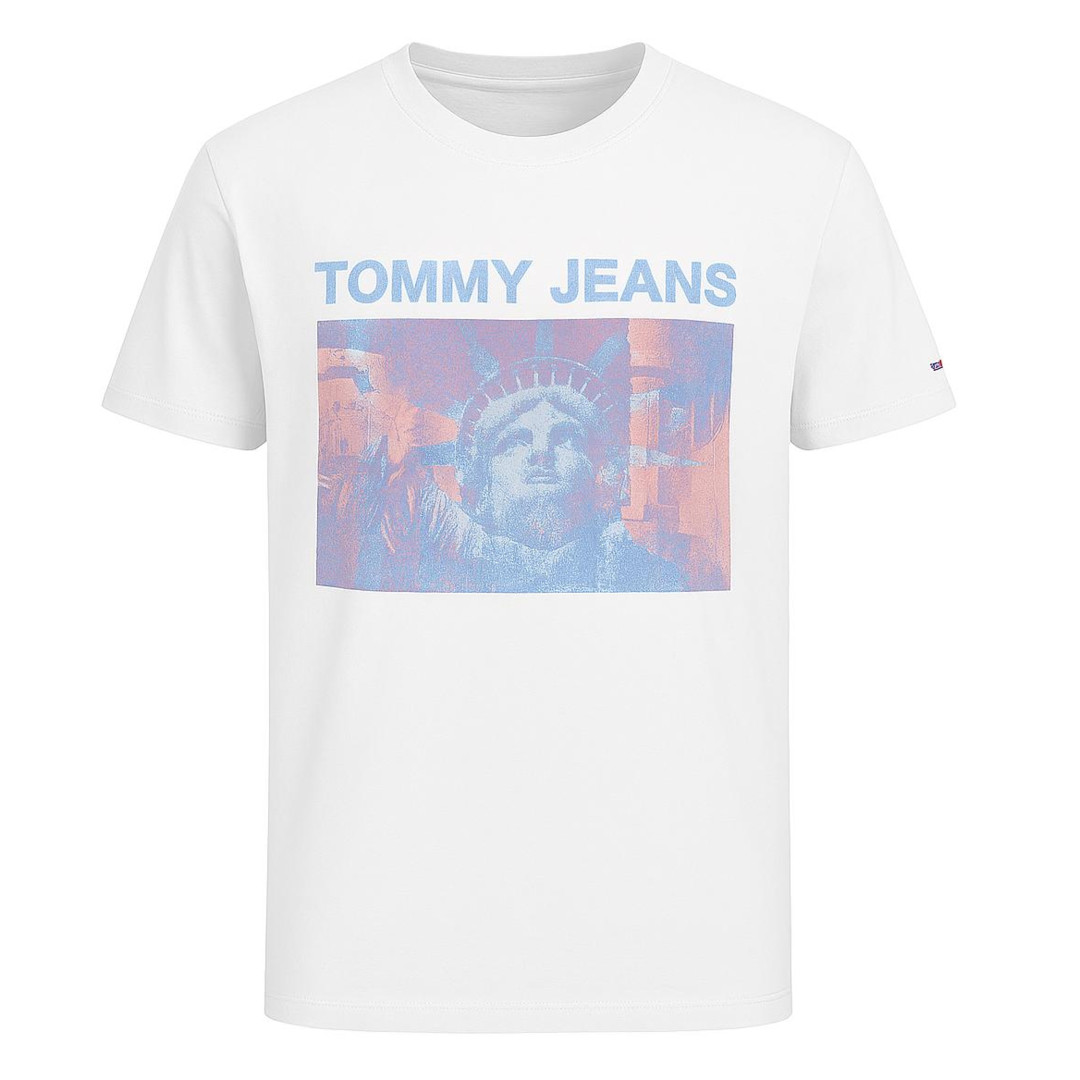 Bílé tričko Tommy Hilfiger s krátkým rukávem Design s moderním potiskem Vyrobeno z kvalitní bavlny pro pohodlné nošení Velikost: Standardní evropské číslování Barva: Bílá s červenými a modrými pruhy Logo značky na rukávu Odhadovaná váha: 200 g